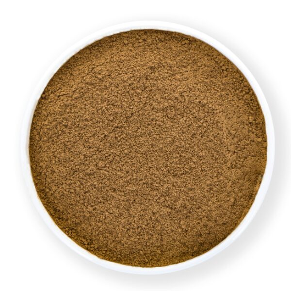 Leaf: Cappuccino coloured, finely ground, powdery